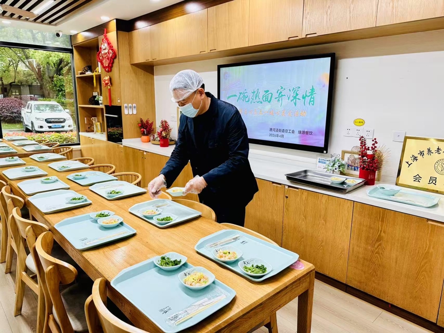 “五一”国际劳动节即将来临之际,徐汇区漕河泾街道总工会组织辖区工会企业缘源餐饮(社区食堂)开展“一碗热面寄深情”活动,为老劳模送上精心制作的本帮特色面食和点心,传递工会温暖与企业爱心。
